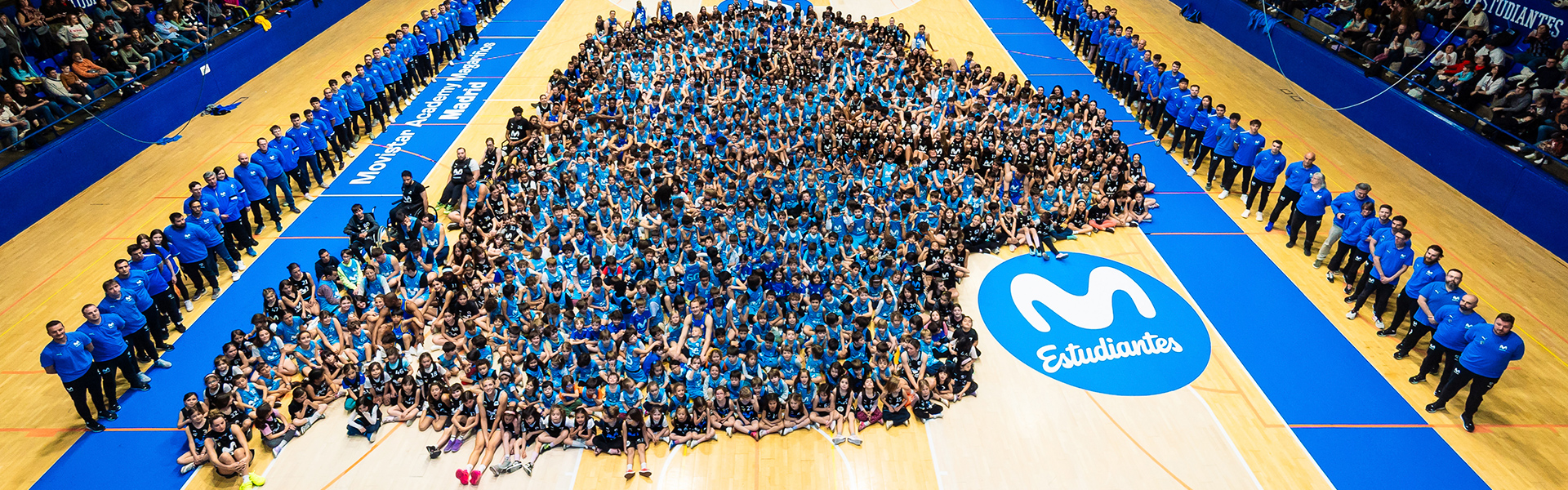 Todos los jugadores y jugadoras de la cantera de talento de Movistar Estudiantes se reunieron para la Foto de la Cantera, formando la silueta del delfín Ramiro, símbolo del club, su afición y la histórica Fuente de los Delfines.